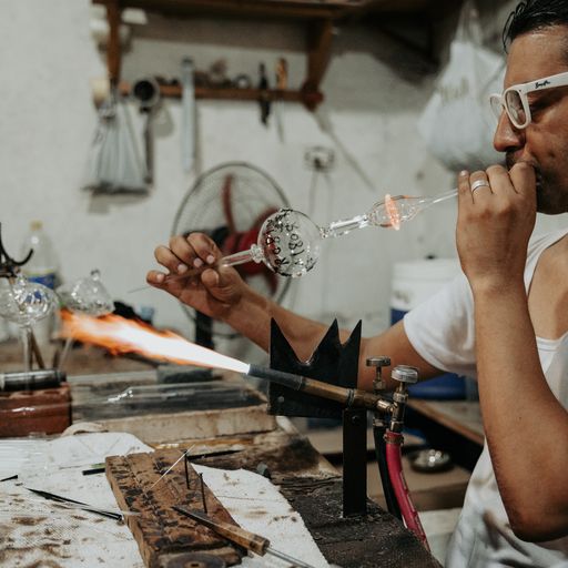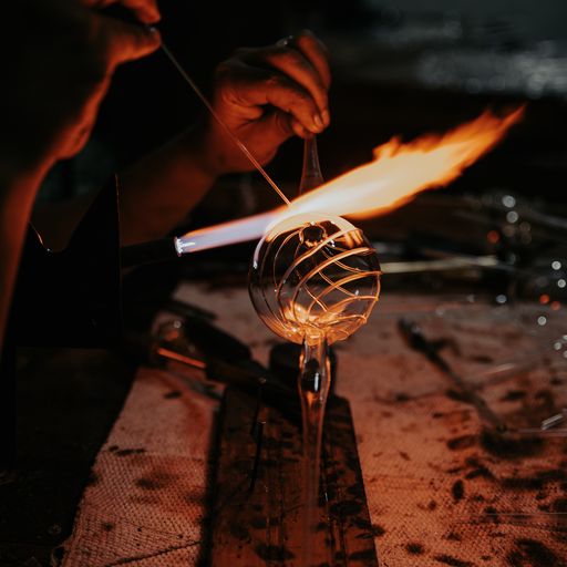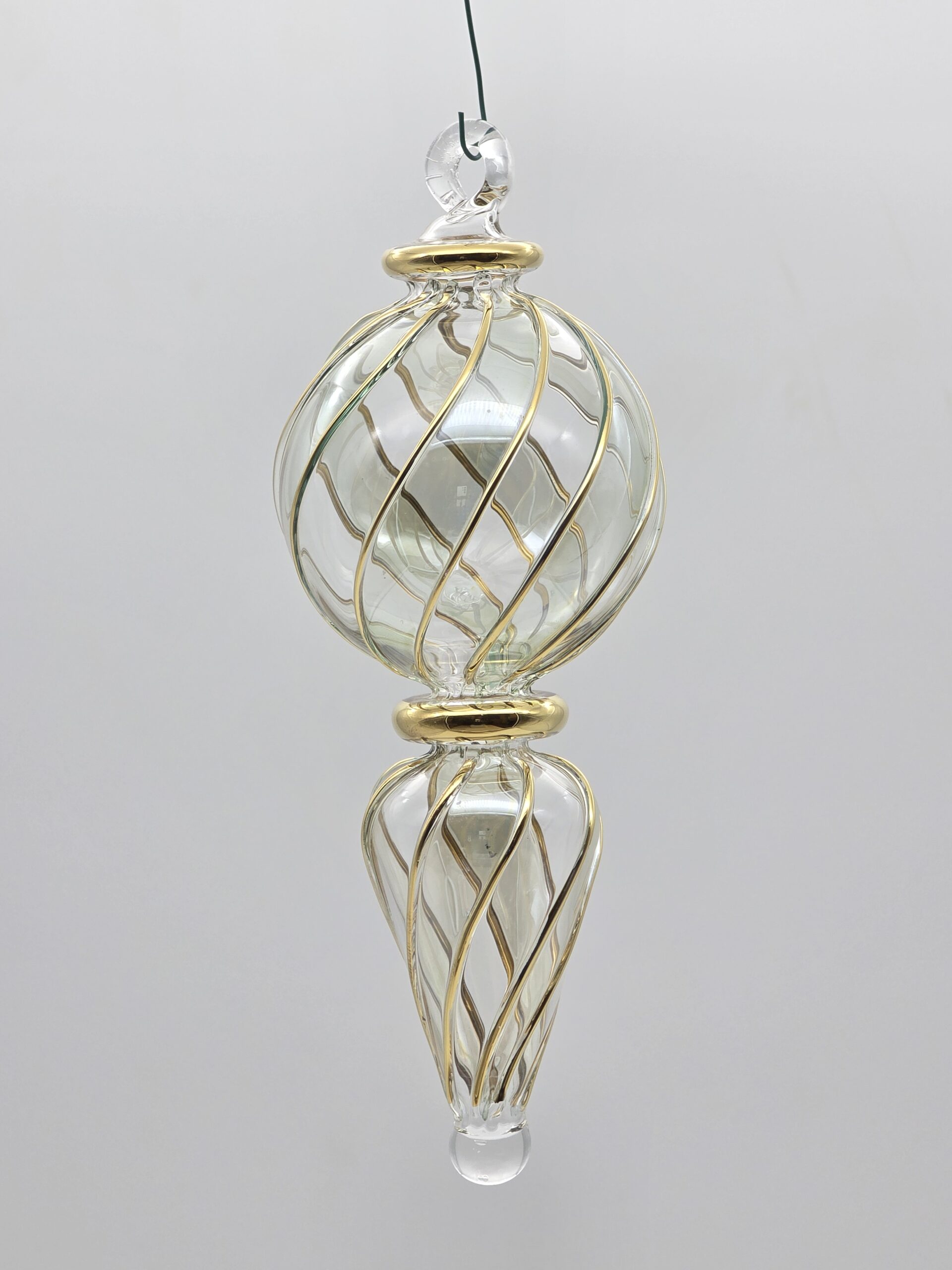 El Adorno Elegancia Egipcia está elaborado en cristal soplado, fabricado y pintado a mano, acabado en forma de espiral transparente con detalles dorados.