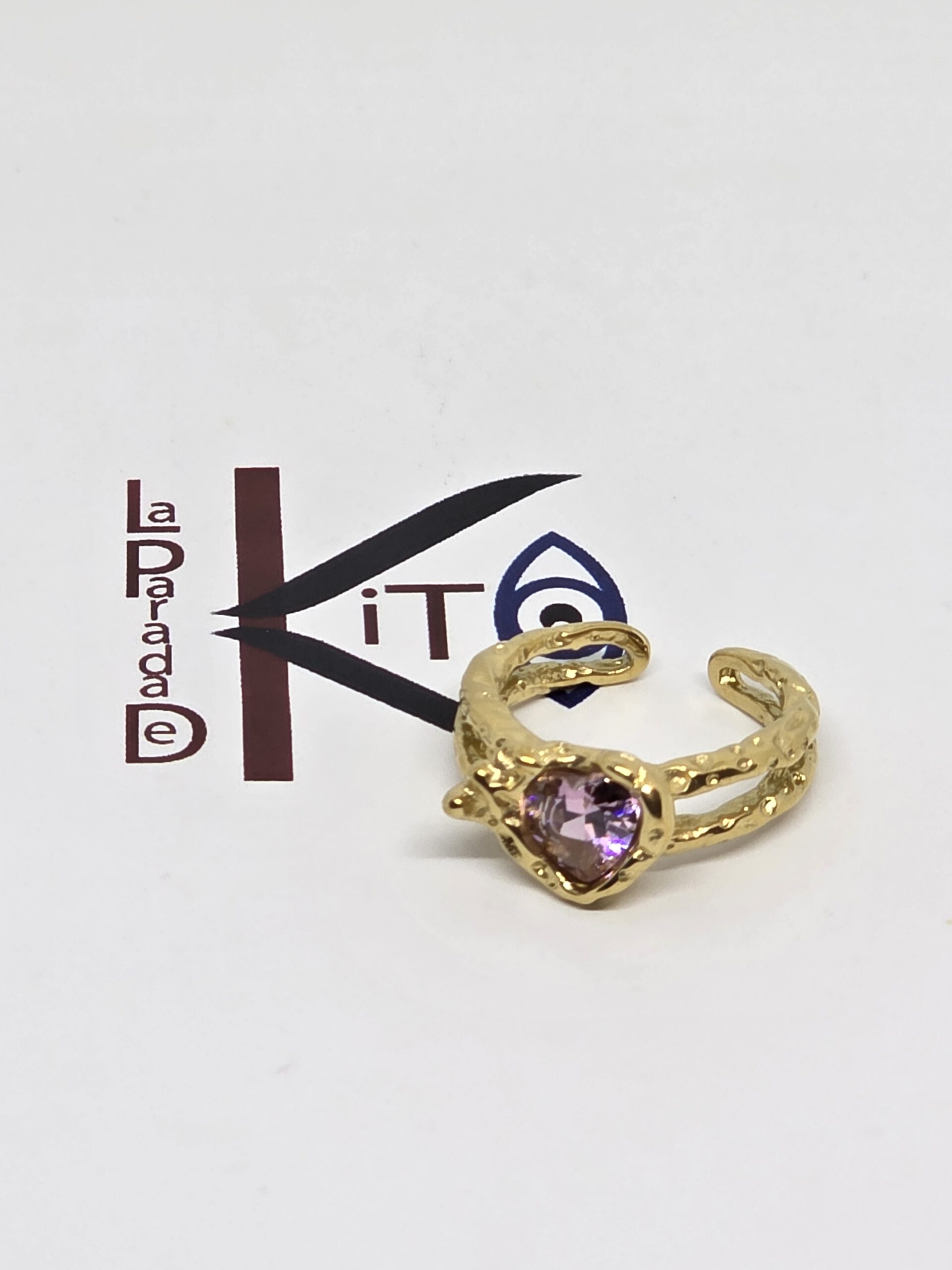 El Anillo Fantasía Rosa es un accesorio elegante y resistente, elaborado en acero dorado antialérgico y decorado con una circonita de color rosa en forma de corazón. Te va a enamorar. Destaca por su brillo y es una preciosidad para mujeres con estilo y a las que les gusta lucir cosas bonitas.