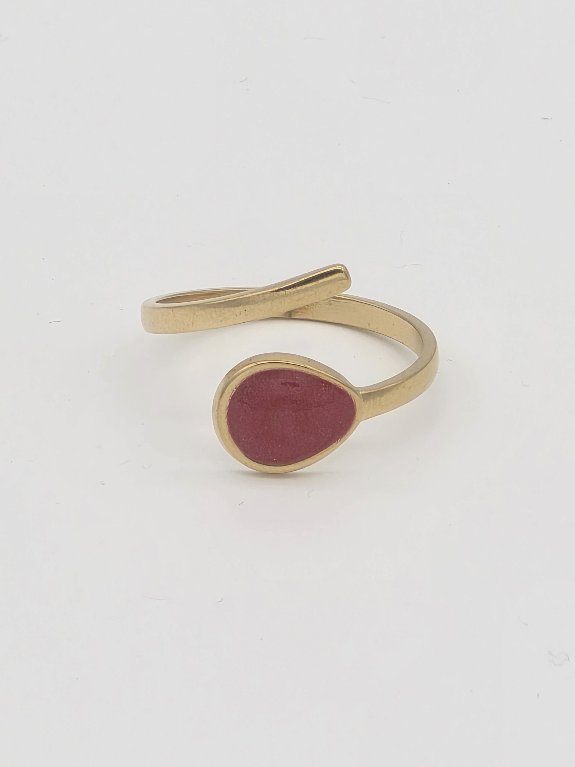 El Anillo Promesa Carmesí es un anillo elegante, de banda abierta, con terminación en forma de gota de color rojo. Color que simboliza pasión, amor, vitalidad y fuerza. Está fabricado en acero dorado antialérgico, con un acabado excepcional.