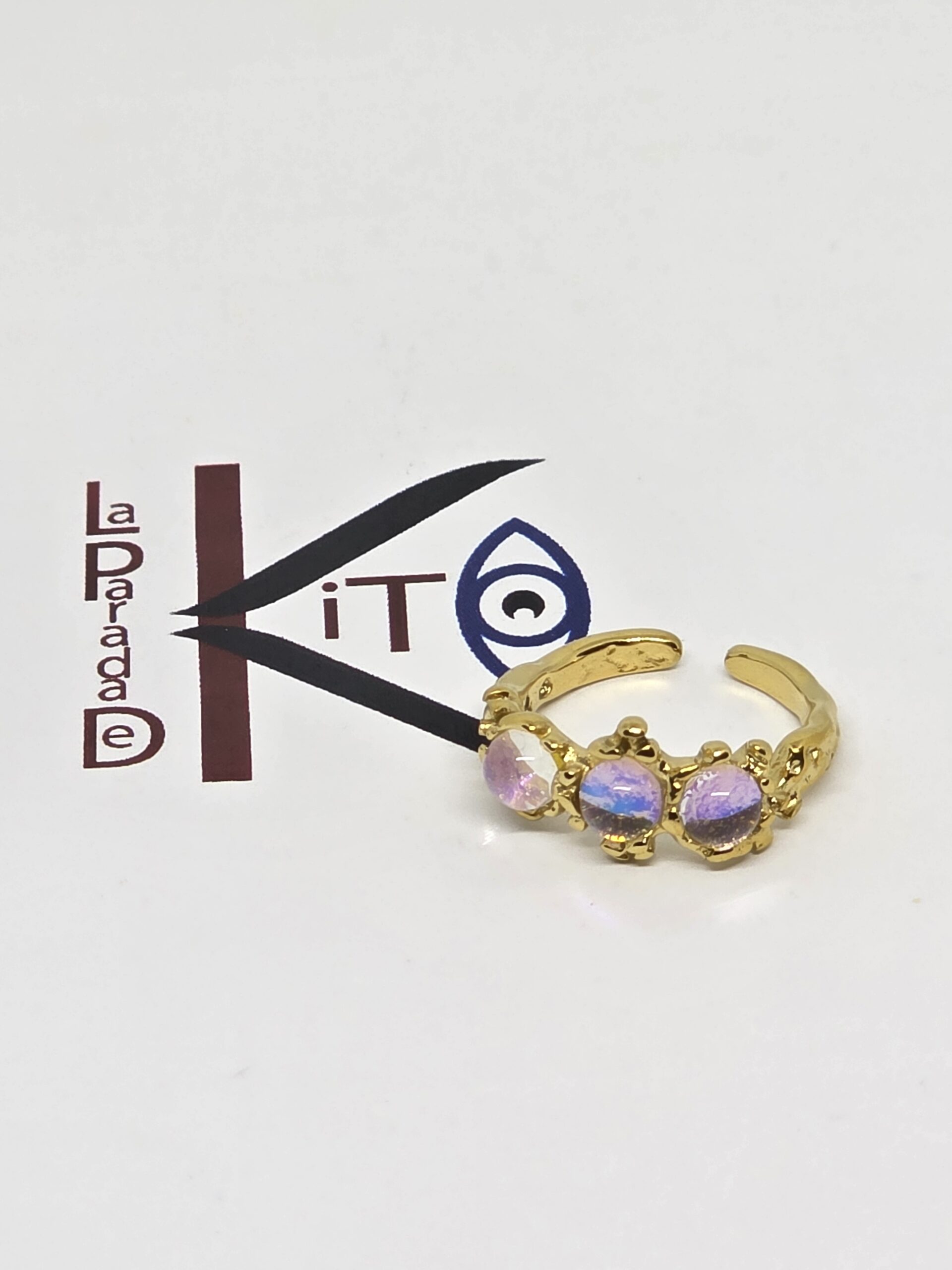El Anillo Tres lunas es un accesorio elegante y resistente, elaborado en acero dorado antialérgico y decorado con tres esferas brillantes del mismo tamaño, que brillan como la luz de la luna. Tiene un diseño muy original. Te va a enamorar. Destaca por su brillo y es una joyita para mujeres con estilo y a las que les gusta lucir todo tipo de abalorios.