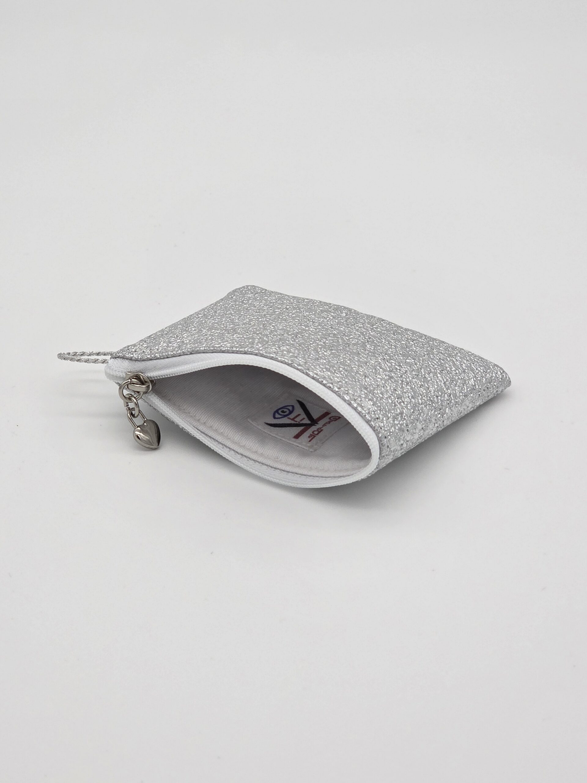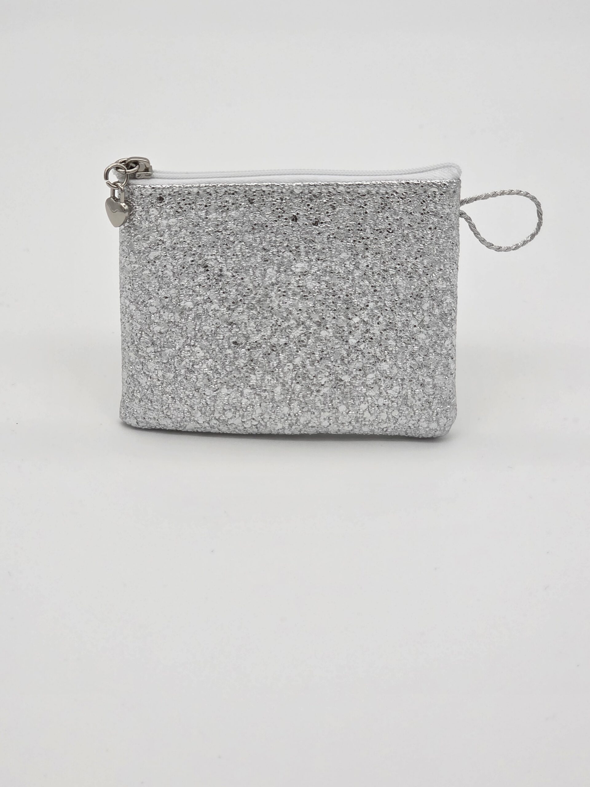 El Monedero Fantasía Plateada es un monedero artesanal que destaca por su bonito color plateado brillante. El tejido es de rafia, y su aspecto es rugoso pero de tacto muy agradable. Se trata de un complemento exclusivo. Cuenta con cremallera metálica y colgante en forma de corazón de color plata. También cuenta con una práctica cinta plateada lateral.